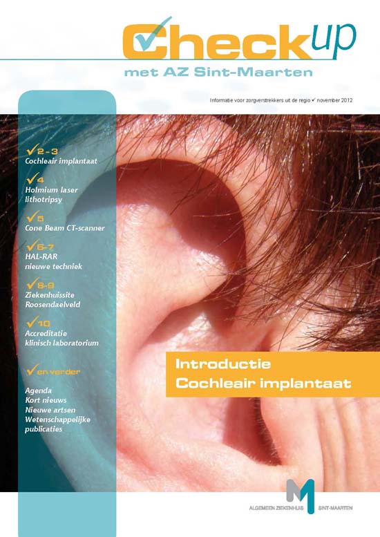 Dr Gerd Claes voert vanaf 2012 cochleaire implantaties uit in het AZ St-Maarten te Duffel. Het informatiemagazine Check Up bericht daarover.