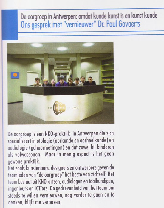 Audio Infos is een vaktijdschrift dat sinds kort ook in het Nederlands uitkomt.  In een van de eerste nederlandstalige edities werpt dit artikel een licht op de oorgroep.  Een mooie pluim.